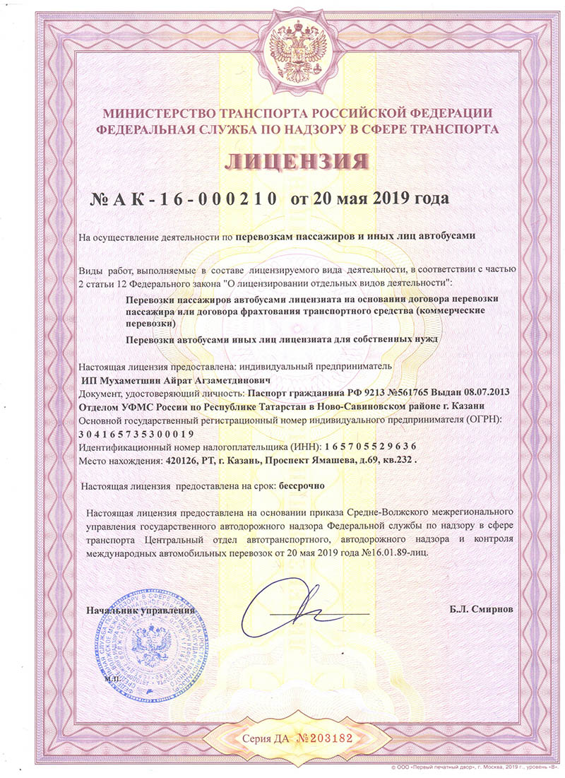 Лицензия на перевозку