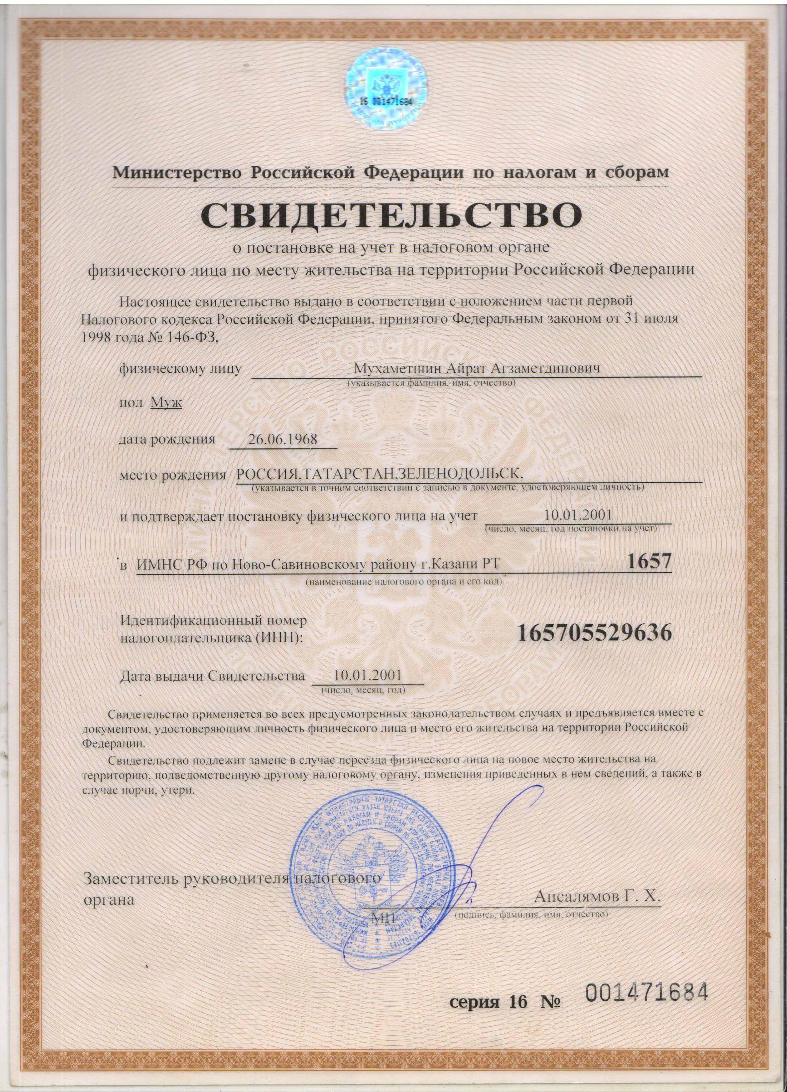 Свидетельство ИНН